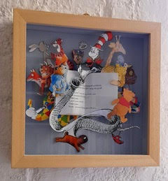 Her series of Children’s Picture Book Artworks, for instance, has featured characters from beloved children’s literature, including Beatrix Potter, Roald Dahl, Julia Donaldson, and even Marvel comics. These illustrated figures appear to leap from the pages, adding vibrancy and drama to each piece.